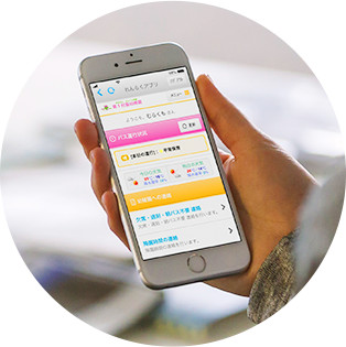 出欠席の連絡や制服・道具類の注文、保育料の確認などができるむらくもアプリを利用。送迎バスの運行状況も、リアルタイムに発信しています。